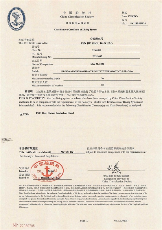 Certificate from CCS (China Classification Society) 中國船級社認證