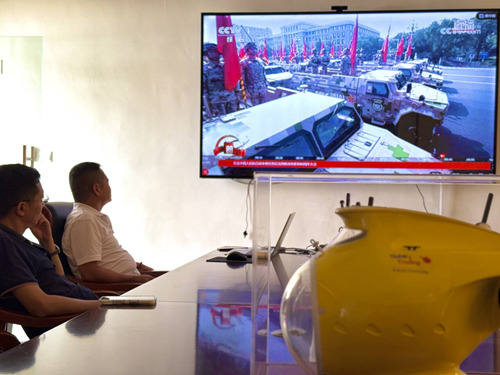 閱兵式上,先進(jìn)的武器裝備集中亮相,受閱方隊步伐整齊劃一,展現(xiàn)出了強(qiáng)大的軍威和國家實力。員工們被閱兵式的莊嚴(yán)氛圍和磅礴氣勢所震撼,不時爆發(fā)出熱烈的掌聲。